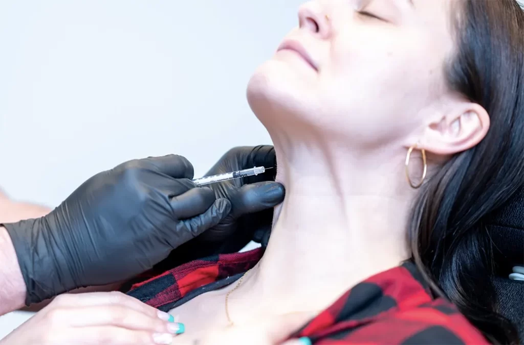 There is no downtime, though you may have slight redness or swelling at the injection sites for a few hours. Avoid strenuous workouts, lying down, or massaging the area for 24 hours.